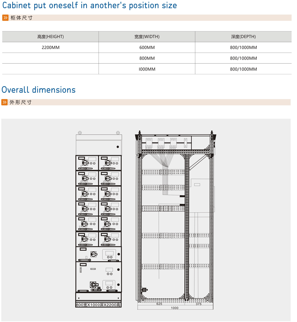 柜體基本框架為C型材組合式結(jié)構(gòu),柜架的全部結(jié)構(gòu)件都經(jīng)過(guò)鍍鋅處理或敷鋁鋅板制作。通過(guò)自攻鎖緊螺釘緊固互相連接成基本框架,再按方案變化需要,加上相應(yīng)的門、封板、隔板、安裝支架,以及母線、功能單元等零部件,組裝成一臺(tái)完整的裝置,內(nèi)零部件尺寸、隔室尺寸,全部按模數(shù)化(模數(shù)單位E=25MM)配置。抽屜單元采用高強(qiáng)度阻燃型工程塑料組件,有效地加強(qiáng)了防護(hù)安全性能,抽屜單元具有體積小、功能強(qiáng)、互換性高、更換維修方便、接觸可靠等特點(diǎn)。柜體可采用側(cè)出線,也可采用后出線方式。垂直通道采用半塊功能板方式,便于維護(hù)且降低了成本。柜體防護(hù)等級(jí)IP3X-4X。