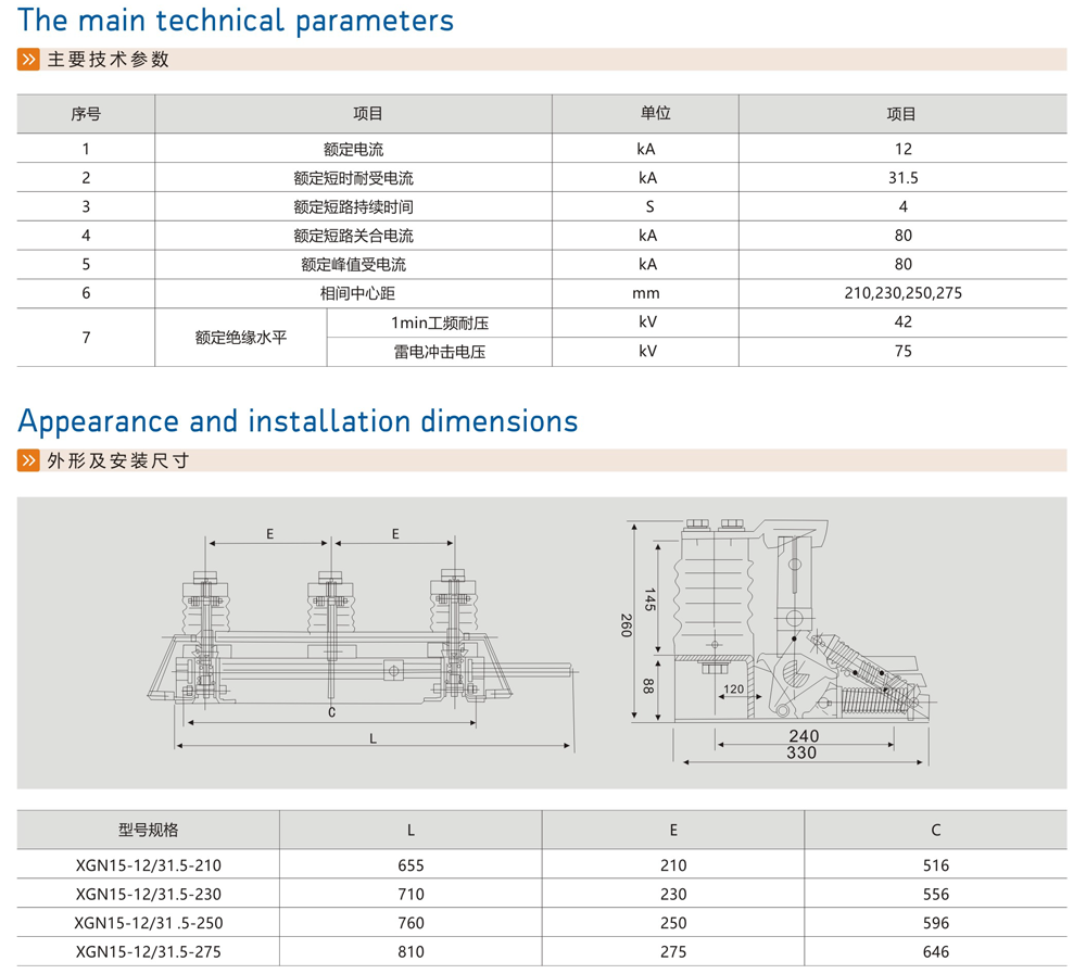 XGN-12型戶內高壓接地開關是一種達到國內先進水平的產品。其性能符合GB1985-2004《交流高壓隔離開關和接地開關》及IEC129的要求,適用于12KV及以下交流50HZ的電力系統中,可與各種型號高壓開關設備配套使用,亦可作為高壓電器設備檢修時接地保護用。本型開關可與帶電顯示裝置配套使用。
